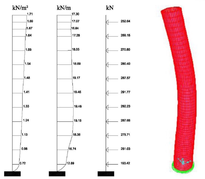 Armirano-betonski industrijski dimnjaci moraju biti ispitani na dejstva sopstvene težine, vetra, seizmike, temperaturnih i hemijskih uticaja. U ovom radu, prikazana je analiza tri AB industrijska dimnjaka na dejstvo vetra, primenom metode konačnih elemenata, a korišćena su dva različita numerička modela-sa linijskim i sa površinskim konačnim elementima. Date su sličnosti i razlike u ponašanju dimanjaka analiziranih u ovim numeričkim modelima. Takođe, uticaji vetra su upoređeni sa uticajima seizmike koji su preuzeti iz literature i dati su odgovarajući zaključci.