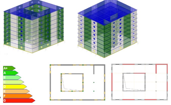 Predmet ovog diplomskog rada je analiza uticaja promene oblika osnove i površine termičkog omotača na energetsku efikasnost i seizmičkuotpornostnove osmospratne poslovne zgrade u Zaječaru. U radu je prvo sproveden proračun energetske efikasnosti i izrađen energetski pasoš za postojeće stanje objekta na osnovu Pravilnika o energetskoj efikasnosti zgrada. Projektni zadatak je bio da zgrada ima energetski razred C. Pomoću programa Tower, prema važećim evropskim propisima Evrokod 8,izvršena je seizmička analiza konstrukcije. Kao relevantni podaci za kasnijepoređenje uzete su maksimalne seizmičke sile. Nakon toga, analizirano je drugo varijantno rešenje sa izmenjenimoblikom osnovei sprovedena uporedna analiza sa aspekta energetske efikasnostii seizmičkeotpornosti između dva rešenja pomenute zgrade.
