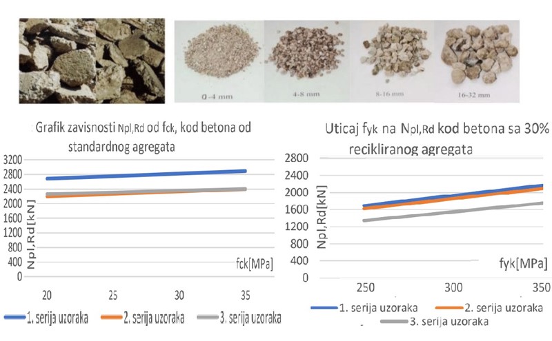 Cilj ovog rada jeste da se pokažu uticaji upotrebe recikliranog agregata na karakteristike betona koji se koristi za ispunu kod stubova od kružnih čeličnih šupljih profila ispunjenim betonom.Prikazaće se značaj sve većeg primenjivanja reciliranog materijala u modernom građevinarstvu, kaoi načini ostvarivanja ovakvog pristupa u konstruisanju.