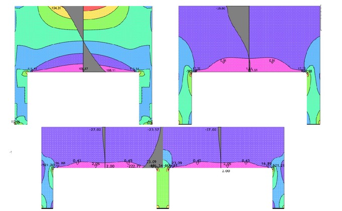 Predmet ovog radaje statička analiza armiranobetonskih zidnih nosača. Uticaj smicanja kodovih nosača je značajan i usled njega dolazi do nelinearne raspodele napona i deformacijapo visini nosača. Upravo je to glavni razlog zašto se ovi nosači ne mogu proračunavati kaostandardni gredni nosači, većje potrebno primenititeoriju elastičnosti za ravno stanjenaprezanja. Rešavanjem diferencijalne jednačine ravnog naprezanja, moguće jedobitidijagrame presečnih sila.Tačnost rezultata se povećava sa povećanjem broja članova reda.Ukoliko se izvršigrubaaproksimacijaopterećenja, rezultatićeserazlikovati odočekivanih. Stoga se danaszaanalizu uticaja ukonstrukcijamakoristerazličiti softverizasnovaninametodikonačnih elemenata(MKE).Korišćenjem MKE,uprogramskompaketuTower,izvršenjeproračunzidnog nosača na jedno polje i kontinualnog nosača na dva poljai dobijeni su dijagrami presečnih sila.Ispitan je uticaj promenevisine, kao i širineoslonacanosača na dijagram sileNx.Na kraju su datapravilaza armiranje ovih nosača, kaoi poređenje veličine kraka unutrašnjih sila izračunatog prema propisimaPBABiBAEL,sakrakom sila dobijenog pomoću MKE.