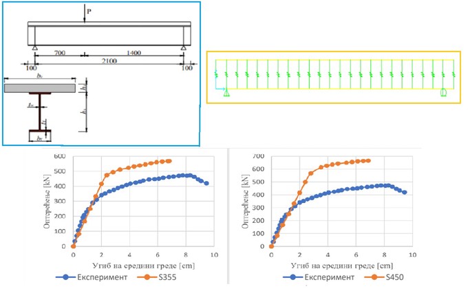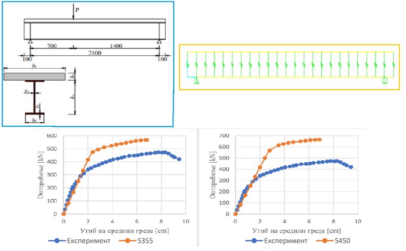 Rad je pisan sa ciljem da se definiše što jednostavniji model spregnute grede sa parcijalnim smičućim spojem u programskom paketu SAP2000 koji će biti dovoljno tačan da se primenjuje za određivanje inicijalne krutosti spregnute grede, kao i za određivanje granične nosivosti spregnute grede.Napravljen je model spregnute grede sa punim i parcijalnim smičućim spojem, a kao dokaz validnosti modela poslužili su eksperimentalni rezultati preuzeti od drugih autora. U radu je izvršen i proračun očekivanih ugiba i inicijalne krutosti spregnute grede sa parcijalnim smičućim spojem na osnovu obrazaca iz ES4 i obrazaca predloženih od strane drugih autora. Takođe je sprovedeno analitičko određivanje granične nosivosti na osnovu obrazaca iz ES4.Najmanja odstupanja ugiba od eksperimenta dobijena su na osonovu obrazaca iz ES4 i Britanskog standarda, dok su najmanja odstupanja inicijalne krutosti od eksperimenta dobijena primenom formula predloženih od strane Krisinela.