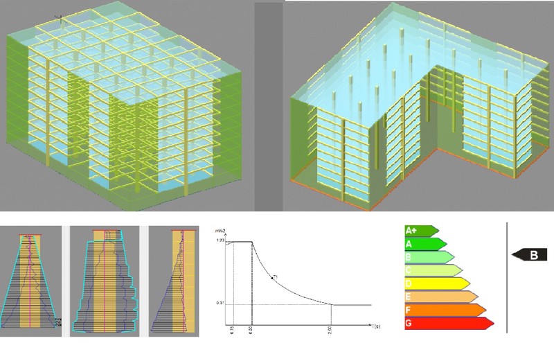 Predmet ovog master rada je uporedna analiza poslovnog objekta sa aspekta njegov eenergetske efikasnosti i seizmičke otpornosti. Na početku je određen termički omotač oba objekta. Projektni zadatak je bio da oni imaju energetski razred najamnje „ S“. Nakon ovog dela, sprovedena je seizmička analiza obe konstrukcije. Ona je urađena u programu Tower,u skladu sa važećim propisima Evrokoda EN1992-1-1 i EN1998-1. Prikazano je kako promena rasporeda zidova utiče na periode oscilovanja.Izvršeno je dimenzionisanje rama u osi 1 iz modela 1, a dimenzionisani su zidovi, grede i stubovi kao primarni seizmički element.
