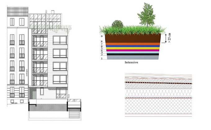 Predmet ovog master rada je poređenje rezultata dobijenih analiziranjem dva rešenja krova jednog objekta, konvencijalni prohodan krov i intenzivni zeleni krov. Cilj ovog rada je da se razmotre uticaji ovih rešenja krovova sa aspekta nosivosti i održivosti. U okviru poređenja varijantnih rešenja sa aspekta održivosti, urađena je i ekonomska analiza u vidu neto sadašnje vrednosti (NPV) intenzivnog zelenog krova. Kada je u pitanju uticaj tipa krova na nosivost, u ovom radu je formuran 2D model zaproračun ploče krova za obe varijante rešenja, gde se zatim rezultati, u vidu potrebne količine betona i armature, porede i izvode zaključci.