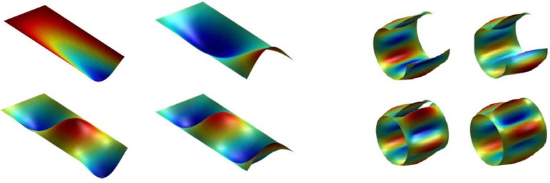 Metod dinamičke krutosti (MDK) predstavlja alternativu metodu konačnih elemenata (MKE) u analizi vibracija i izbočavanja konstrukcija. Osnovni element u MDK je kontinualni element, odnosno njegova matrica krutosti, koja je formulisana na osnovu tačnog rešenja diferencijalne jednačine problema, pa je samim tim izbegnuta potreba za diskretizacijom domena. Da bi MDK mogao da nađe širu primenu, potrebna je odgovarajuća baza kontinualnih elemenata. U okviru disertacije su po prvi put formulisani kontinualni elementi za analizu vibracija Mindlin-ove pravougaone ploče i segmenta kružne cilindrične ljuske po Donnell-Mushtari-evoj i Flugge-ovoj teoriji. Za rešenje problema slobodnih vibracija korišćen je Gorman-ov metod superpozicije, dok je dinamika matrica krutosti formulisana pomoću metoda projekcije. Takođe, na osnovu rešenja u zatvorenom obliku formulisani su sledeći kontinualni elementi, odnosno odgovarajuće matrice krutosti, za analizu vibracija i izbočavanja: Maurice Levy-eve ploče po Mindlin-ovoj teoriji, kružne cilindrične ljuske i segmenta kružne cilindrične ljuske sa specijalnim graničnim uslovima po Donnell-Mushtari-evoj i Flugge-ovoj teoriji. Izvedene matrice krutosti su implementirane i za tu svrhu napisani Matlab program za analizu vibracija i izbočavanja sistema ploča i ljuski. Rezultati mnogobrojnih numeričkih primera su upoređeni sa dostupnim rezultatima iz literature, kao i rezultatima MKE, čime je izvršena verifikacija u radu formulisanih kontinualnih elemenata.